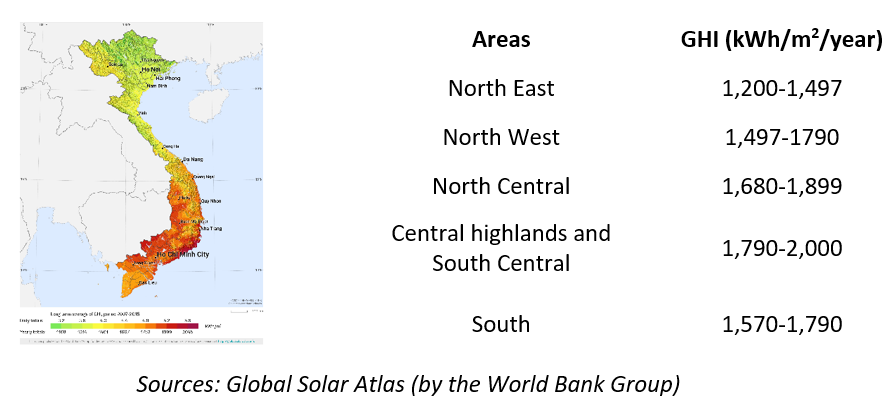 根据世界银行全球太阳能地图集数据,越南中部和南部地区平均GHI为每平方米1,753 kWh,显著高于东南亚其他国家,为大规模光伏电站开发提供了自然条件。
